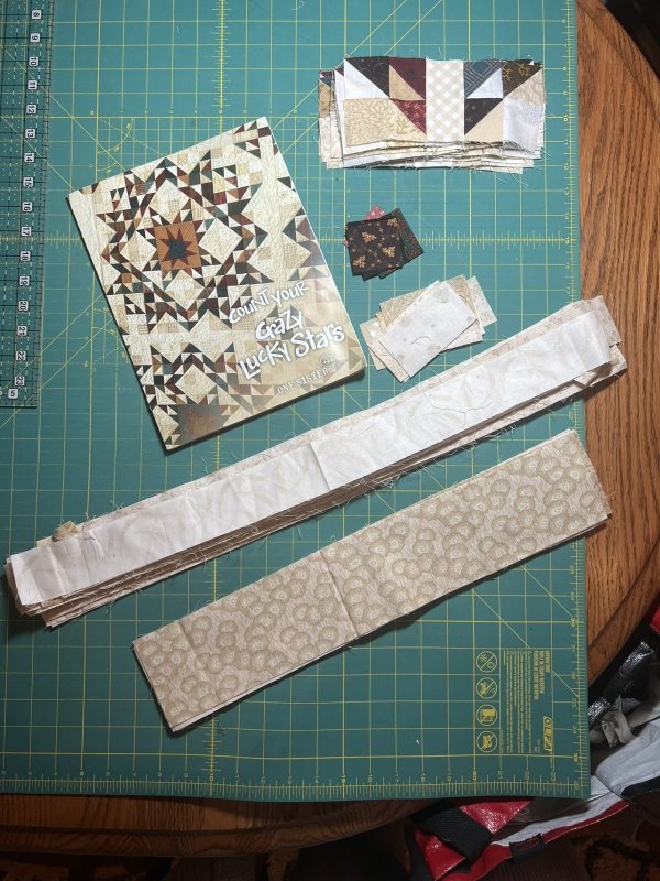 The final border is created using the pieced sections (pictured below), combined with the remaining small and large cream rectangles.