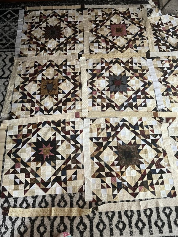 - After November's lesson, you should have 9 total Spinning Wheels blocks, each measuring 24.5" square.
